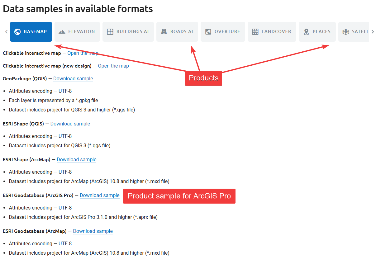 You can find examples of all products in ArcGIS formats for both ArcMap and ArcGIS Pro.